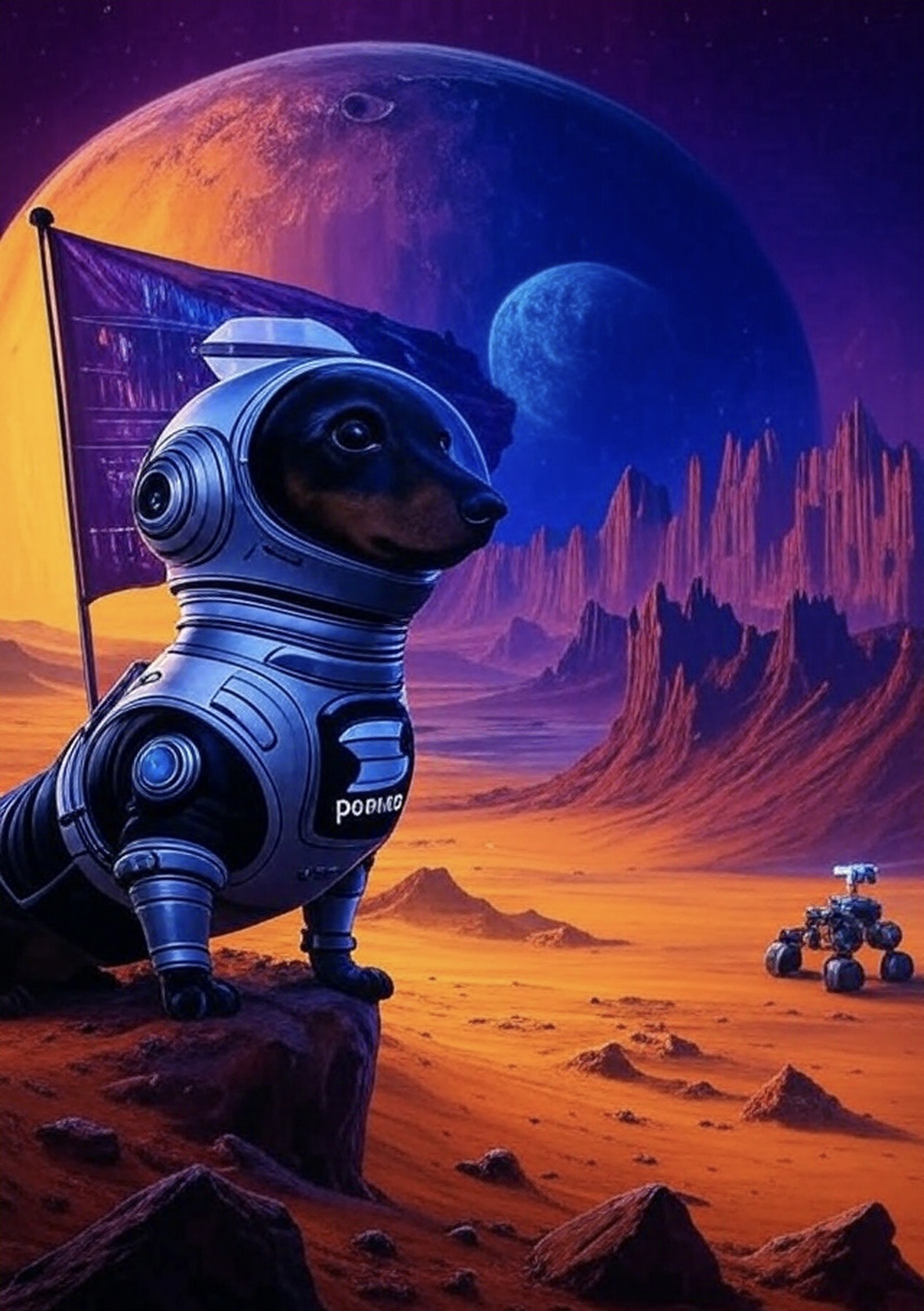 NIKY on ASTRO launching through the cosmos with onyx paws and a zero-gravity swagger — Niky on ASTRO is a tiny dachshund with a big mission: to conquer the universe with style and attitude. A true star in the making, she’s exploring new frontiers.