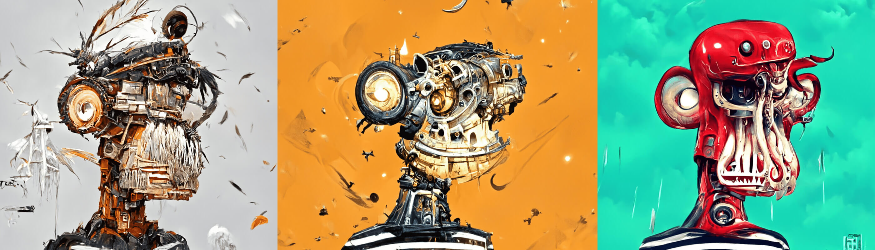 Original pieces of AI generated art featuring 20 different art themes. No two are alike. 10,000 completely unique Art NFTs. Commercial rights of each NFT belong to the current holder.