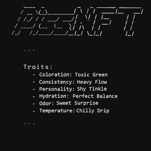PissNFT designed by AI, created by piss drinkers. CA: 5EqRDhtdM5We4a5oyLeebJz7LfsRyXMNC52DMNEhpump