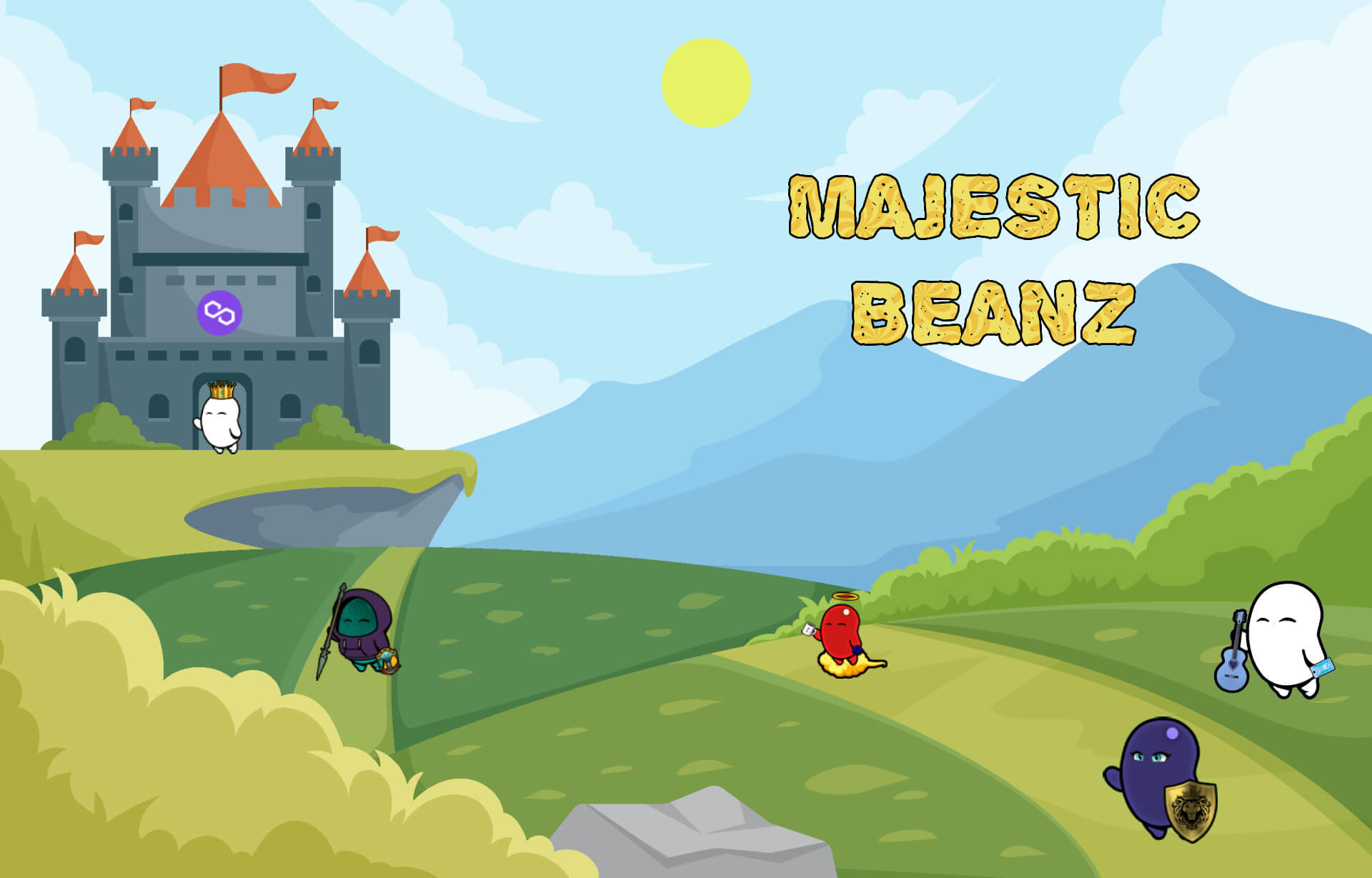 Majestic Beanz are a fictional group of 5,555 beanz-shaped creatures who live in the faraway kingdom of Polygonz. All holders will have a chance to be blessed by this creature to become majestic like them.